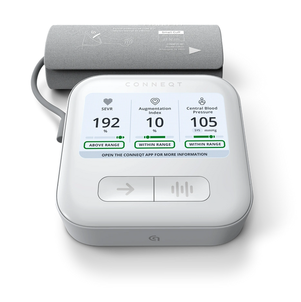 Measures blood pressure and advanced cardiovascular biomarkers like central blood pressure, arterial stiffness, and heart stress.